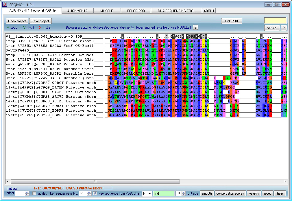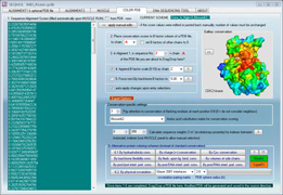 Some of the SEQMOL components: - Maker and editor of multiple sequence alignments - PDB surface solvation (by water) and Coulomb