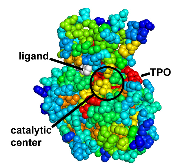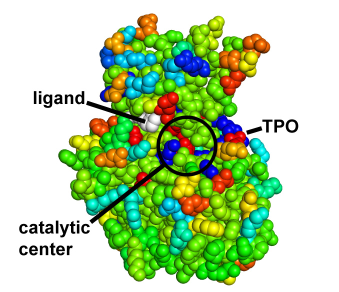 CDK2 kinase colored by conservation, physical