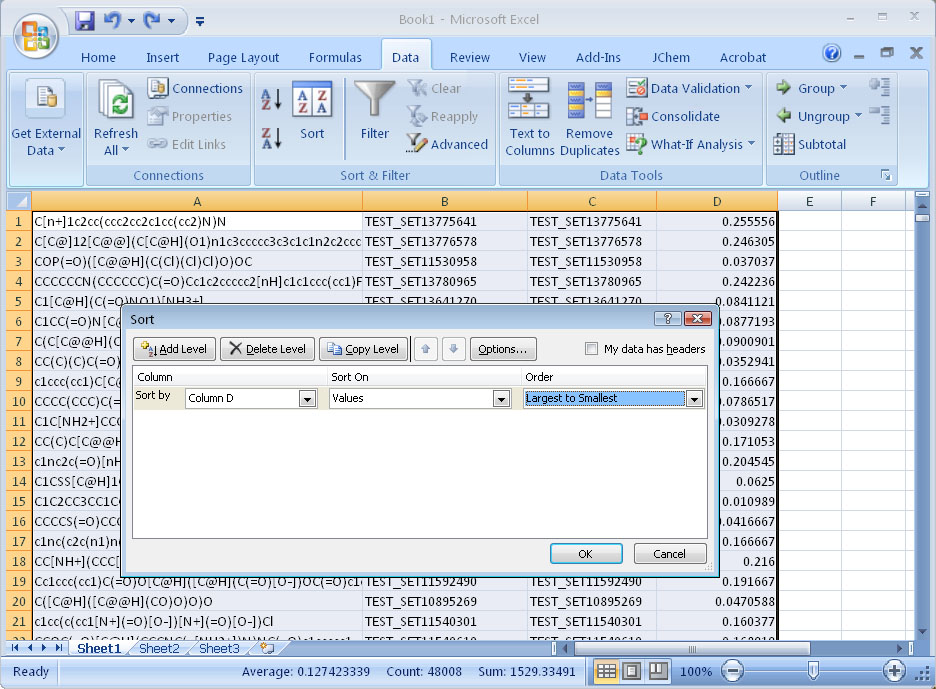 Any SDF dataset can be used for SAR analysis. Of course, most interesting are datasets produced by actual "wet" high-throughput screening. For this excersize, however, we will use Acros data set.