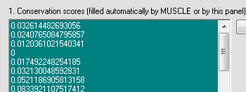 4. "Conservation score for sequence number No" sets the FASTA sequence for which the conservation scores will be computed. The output conservation scores,